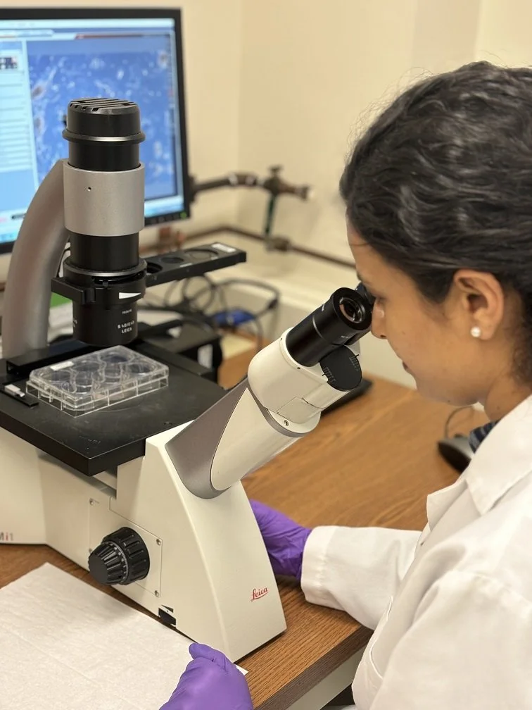LHON is a mitochondrial disorder that causes permanent blindness. It is caused by mitochondrial DNA abnormalities in genes regulating ATP production. Mitochondrial dysfunction is known to play a critical role in the pathogenesis of many optic neuropathies. Mitochondrial damage leads to increased oxidative stress and selective death of RGCs, the central pathologic feature of LHON. Therefore, the mitochondrial function has been a target of therapeutic intervention. Restoring mitochondrial function by transplantation is a novel therapeutic approach that can likely rescue RGC function and has the potential to benefit pediatric patients 12 years of age and younger who account for 10% of total LHON cases. Dr. Vrathasha hypothesizes that RGCs would be able to accept healthy donor mitochondria and show improvements in the functional measures affected in LHON. Preliminary studies were conducted in iPSCRGCs using mitochondria isolated from human skeletal muscle cells. Dr. Vrathasha’s results showed that iPSC-RGCs incubated with exogenous mitochondria accept them by 1 hour, and the uptake increases with mitochondrial dosage and incubation time. Furthermore, oxidatively stressed iPSC-RGCs produced significantly lower reactive oxygen species following donor mitochondrial transfer. These data support that mitochondrial transplantation is worthy of further study in ophthalmic diseases, especially in childhood-onset LHON (ChO-LHON); who are reported to have a stronger chance of recovery of visual acuity. Dr. Vrathasha hopes to demonstrate through her studies in iPSC-RGCs from LHON patients and the LHON mouse model that mitochondrial transplantation is a viable therapy and can be used as a mitigating treatment for ChO-LHON before the onset of vision loss.