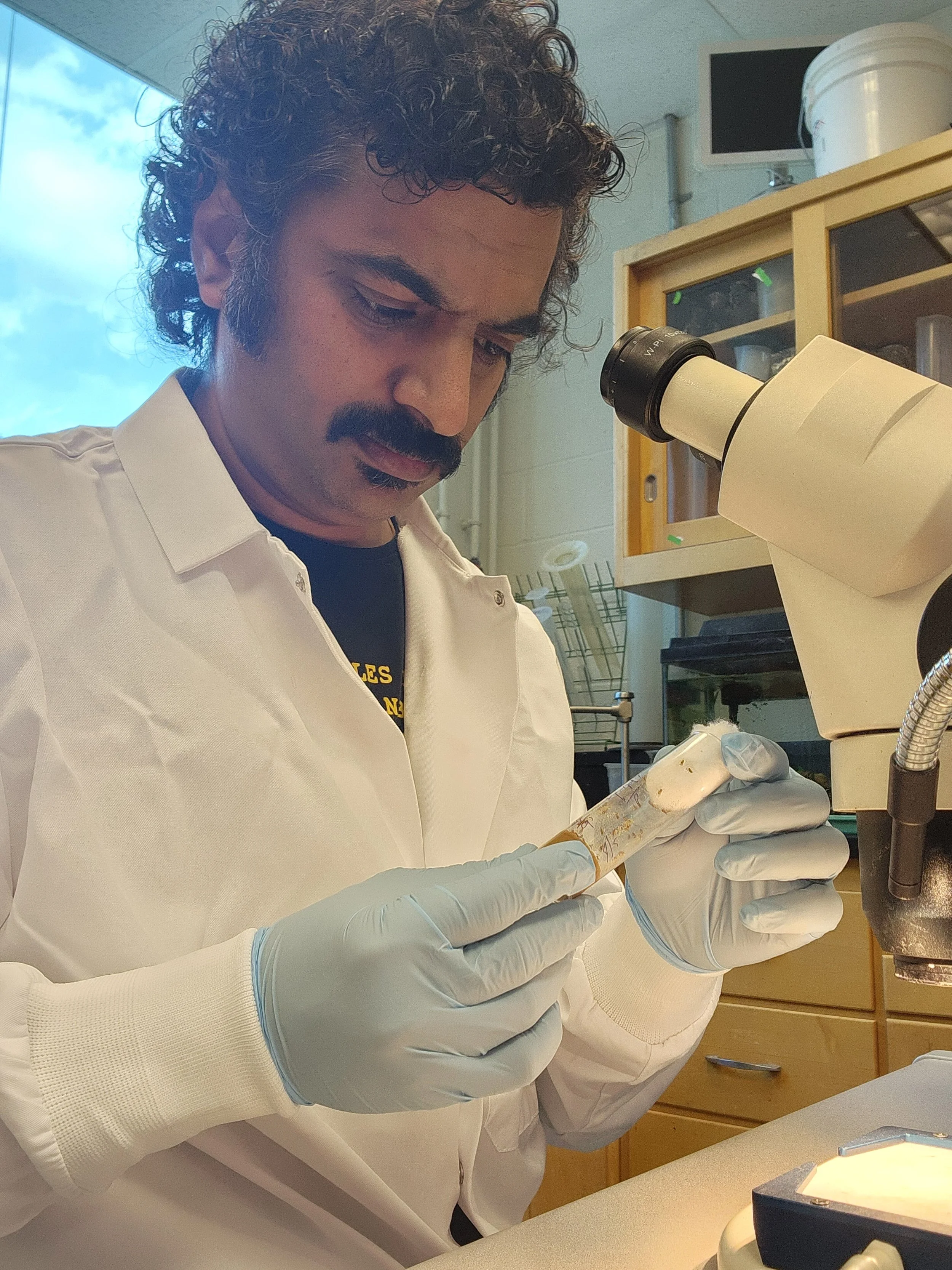 His hypothesis is that miRNA-190 regulates eyeless gene expression and any perturbation in this regulation may lead to eye disorders. Studies on eyeless gene mutations in Drosophila have shown either reduced eye or “no eye” phenotype. Aim 1: Regulation of PAX-6 gene expression by miR-190 in the developing eye, and analyzing the function of miRNA-190 by (a) mutating its binding site in ey/ PAX-6 and (b) through miRNA-Sponge or knock outs in the eye development. Aim 2: Regulation of cell proliferation versus cell death by miRNA-190-ey/PAX-6 through JNK signaling pathway in the developmental defects of Aniridia. This study may highlight PAX-6 regulation through miRNA-190 in the eye development and its role in cell-proliferation or cell-death and any dysregulation in this system may lead to Aniridia.